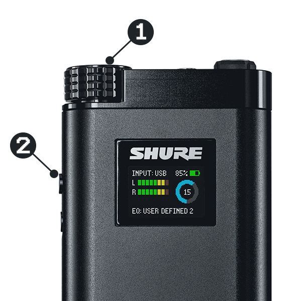 Once finished customizing the EQ setting, push button ② once. Use button ① to decide to save that setting under USER DEFINED 1,2,3, or 4. Kindly note that once a setting is saved it will replaced the previous setting of that USER DEFINED number.