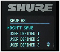 Once finished customizing the EQ setting, push button ② once. Use button ① to decide to save that setting under USER DEFINED 1,2,3, or 4. Kindly note that once a setting is saved it will replaced the previous setting of that USER DEFINED number.