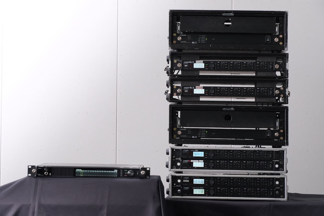 ワイヤレス・マイクの数が多い現場の需要があり、受信機・デバイダ(分配器)の設置スペース、セッティングの効率化を模索していた。