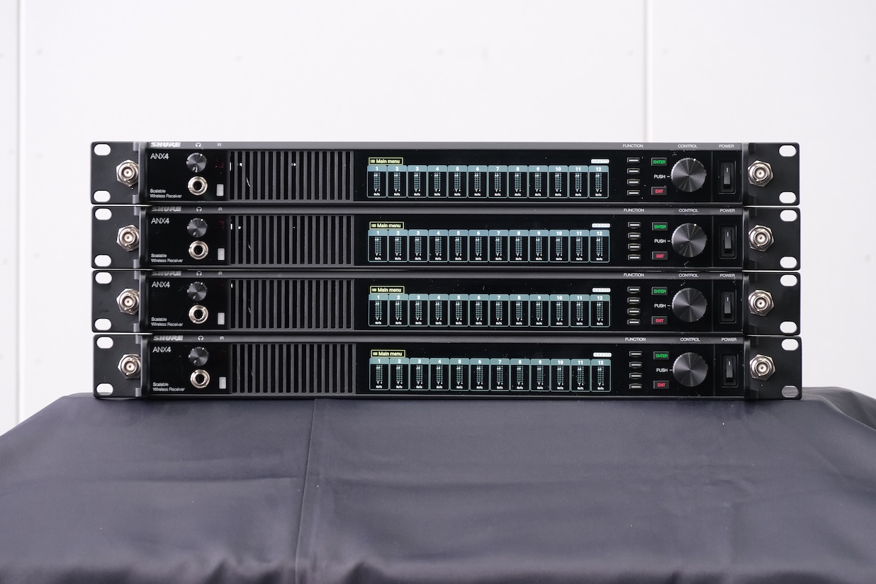 ▲映像センター様が導入された4台のANX4。ULX-Dであれば最大96chの運用が可能だが、1台=12ch固定にて運用する予定とのこと